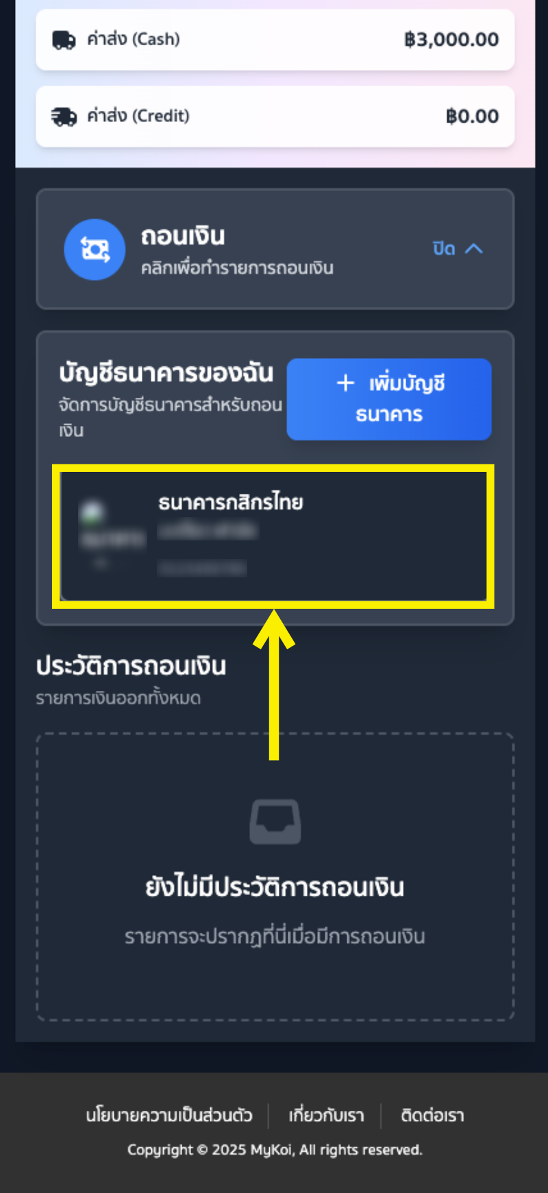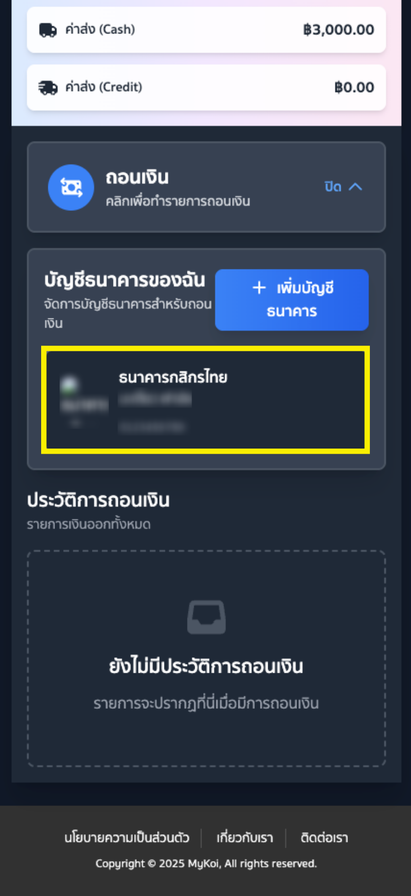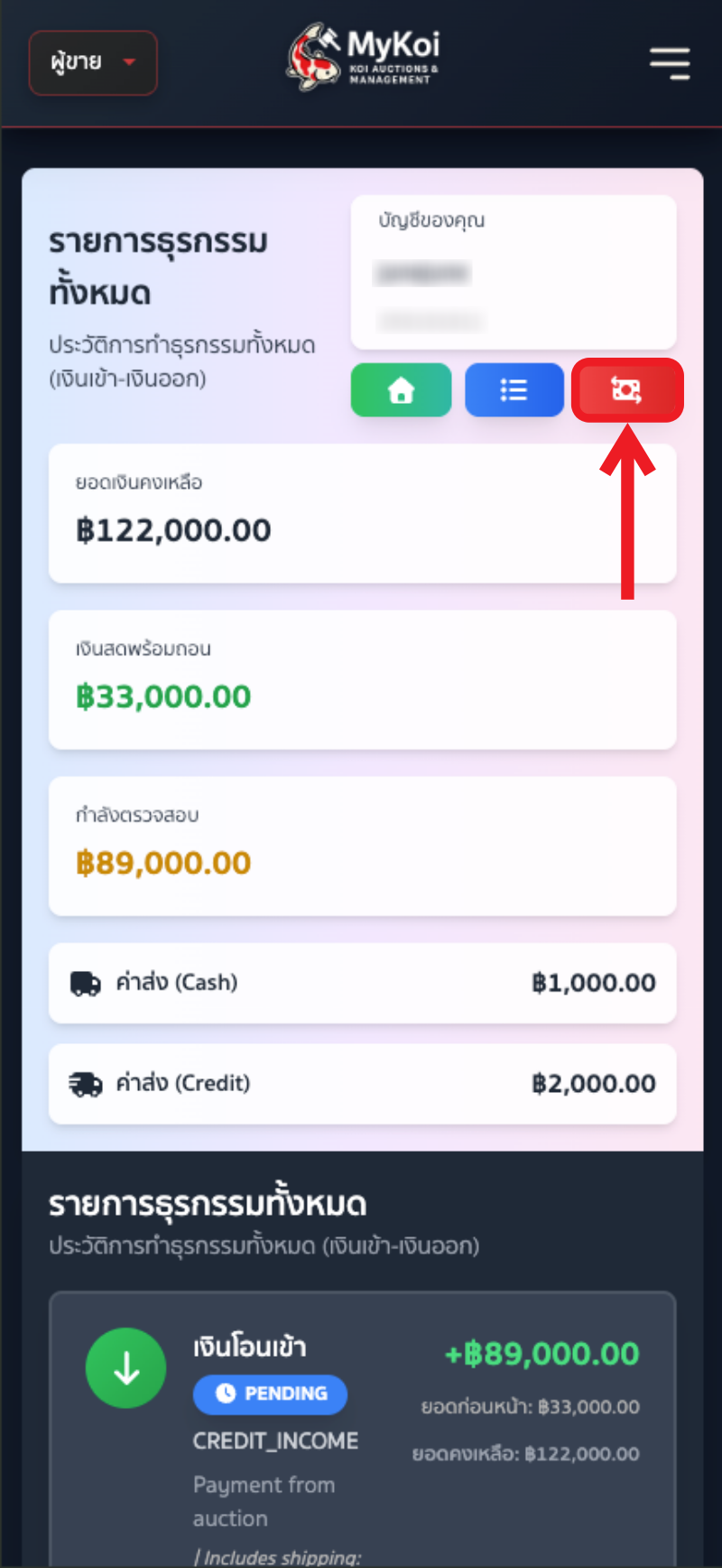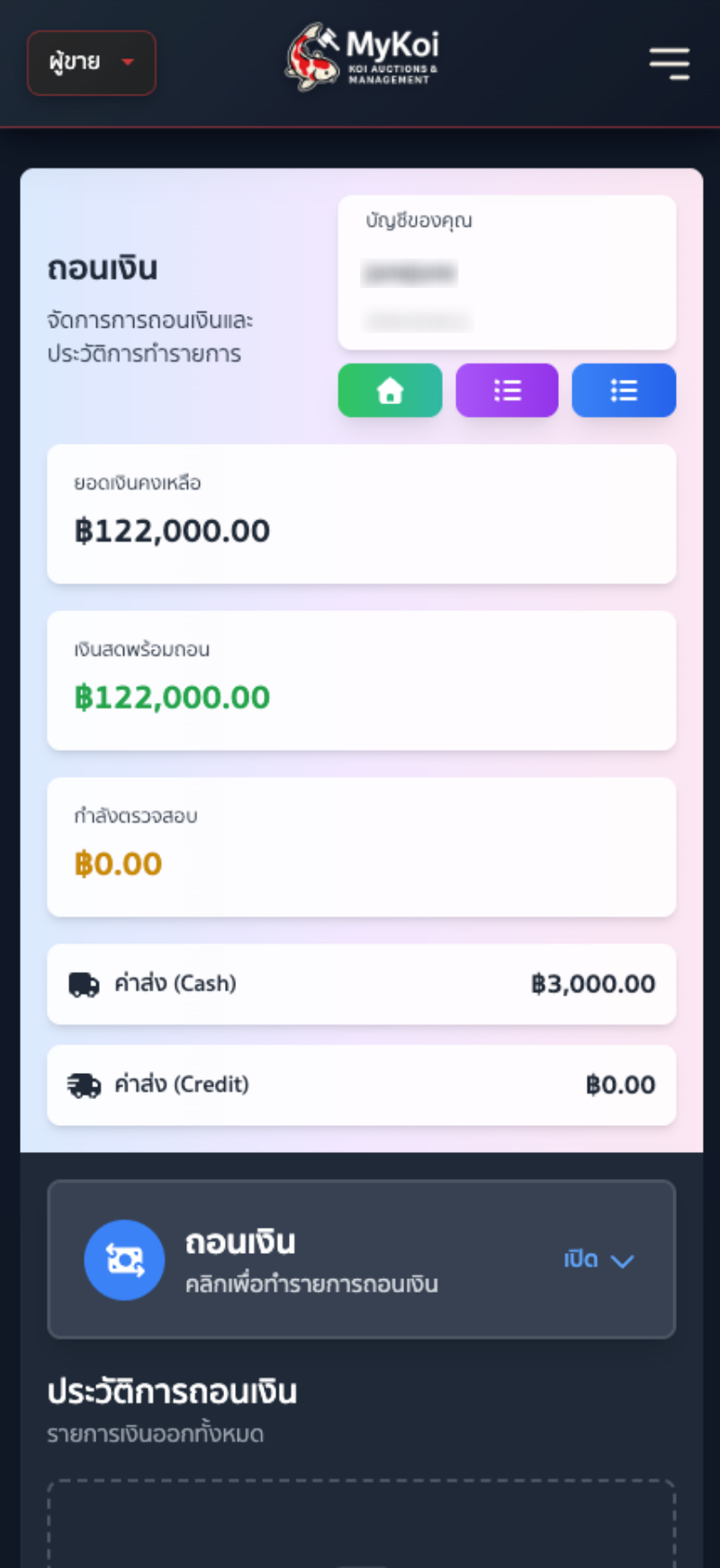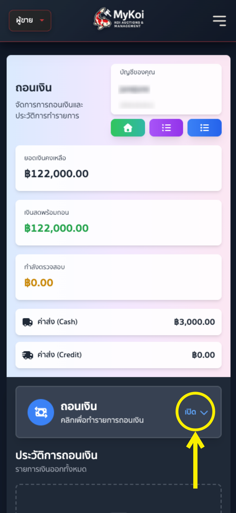 ขั้นตอนการถอนเงินจากระบบ ในโหมดผู้ขาย